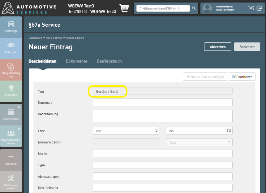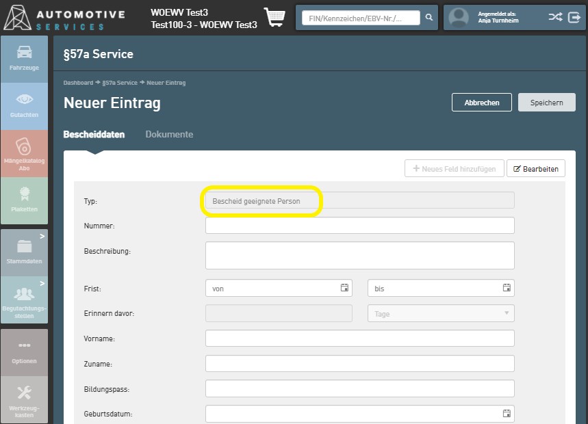 - Sie aus Versehen ein Gutachten für eine Fahrzeugkategorie erstellen, für die Sie keine Berechtigung haben (z.B., ein Fahrzeug über 3,5t)