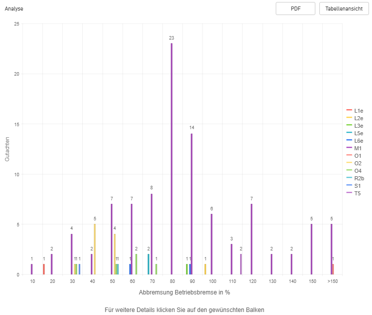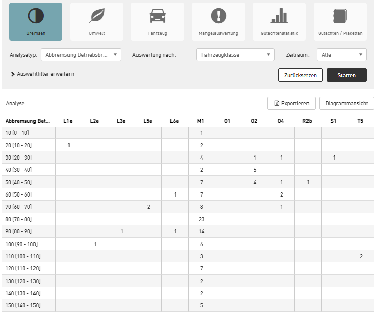Mit dem Softwaremodul Analyse können Sie Ihre Gutachtendaten schnell und übersichtlich auswerten. Die Ergebnisse können in Form von Diagrammen und Tabellen dargestellt werden. Damit können Sie vergleichbare Auswertungen wie die Revisionsbehörde machen.